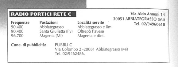 ... dopo un paio d'anni (1987 ndr) cambio radio ora sono a Rete C la radio locale di Abbiategrasso anche qui mi viene affidata all'inizio la domenica pomeriggio