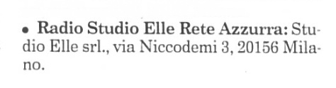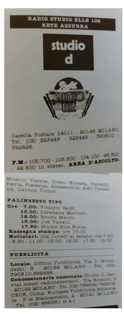 ... ad esempio, ad Abbiategrasso, mio paese d’origine in provincia di Milano, c’era Radio Studio Elle.