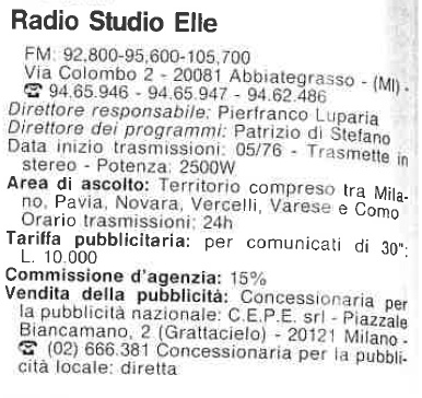 per qualche mese nella sede di Abbiategrasso e la Radio (sfruttando le frequenze a disposizione dei due editori su emissione unica) si rinomina Studio Elle-Gbr.