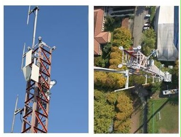 traliccio di 73 metri d' altezza è installato in una zona limitrofa al campo sportivo.