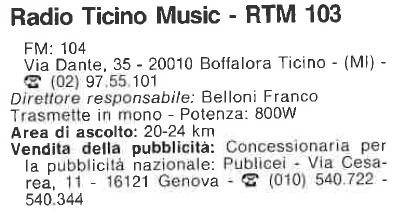 la costituzione di una radio che si sarebbe chiamata RTB - RADIO TICINO BOFFALORA (all' allegato (1) stralcio dell' atto costitutivo).