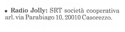 Emanazione della Cooperativa Radio Trasmissioni Casorezzo, Radio Jolly nasce nei primi anni Ottanta sulla frequenza