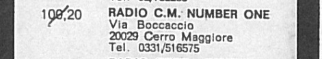 Così RCM Number One, come tante altre emittenti libere della prima ora, pone sull'off l'interruttore del trasmettitore a 100,200 MHz, che viene ceduto
