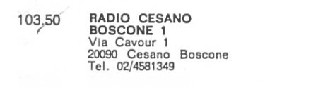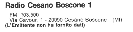 Unico riferimento di questa emittente che trasmetteva da Via Cavour a Cesano Boscone sui 103,500 Mhz รจ la