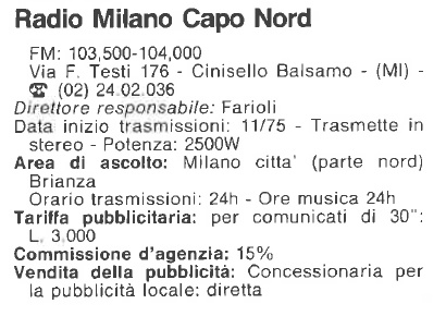ResisterĂ nell' etere milanese per oltre un ventennio chiudendo i battenti nel 1997.