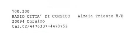 Emittente di Corsico che sul finire degli anni 70 trasmetteva sui 100.200 mhz.