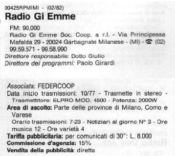 Ottima era la dotazione tecnica (ai tempi un sistema radiante di 8 dipoli a polarizzazione mista, alimentati da un trasmettitore da 1 Kw).