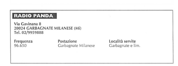 Radio Panda era seguito da un "25" ossia il numero dei soci fondatori.