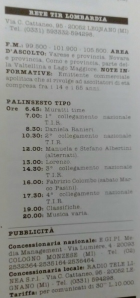Frequenza utilizzata 101,900 mhz. Qui un palinsesto del 1977.