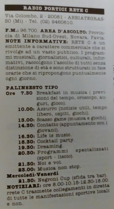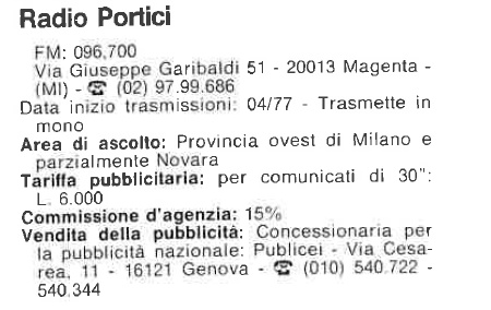 Emittente nata nell' Aprile 1977 con studi nella centralisima Via Garibaldi di Magenta al civico 51.