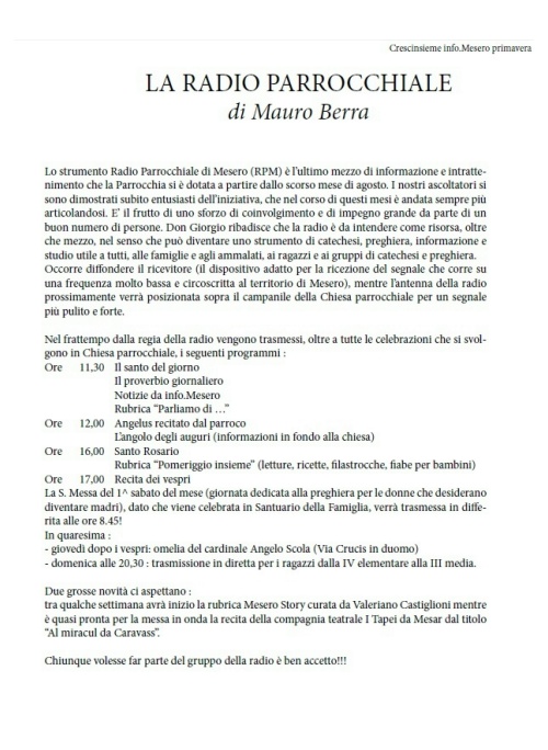 Attiva dal 2012 รจ la Radio della Parrocchia e del Santuario di Mesero.