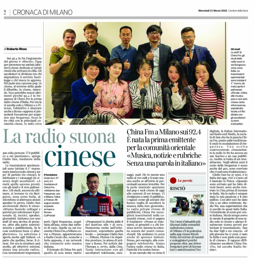 China fm è la prima radio a trasmettere esclusivamente in cinese su Milano e Firenze ed il format