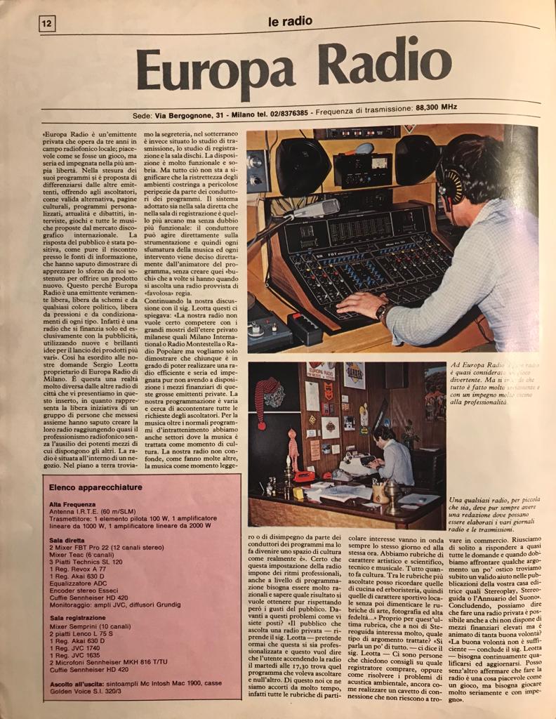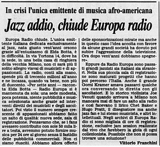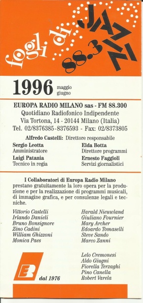 Corriere della Sera dell' Agosto 1996 Elda Botta: "Per sette anni Europa Radio si e' mantenuta da sola: una sede modesta, poca potenza, niente pubblicita'