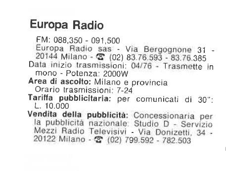 In realta', almeno dalla seconda meta' degli anni '80, molti problemi di interferenza Europa Radio li creava da se', avendo attivato una serie di impianti