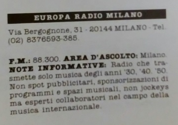 (l'emittente arrivera' ad avere una propria band: la Europa Radio All Star Jazz Band di Duccio Castelli).