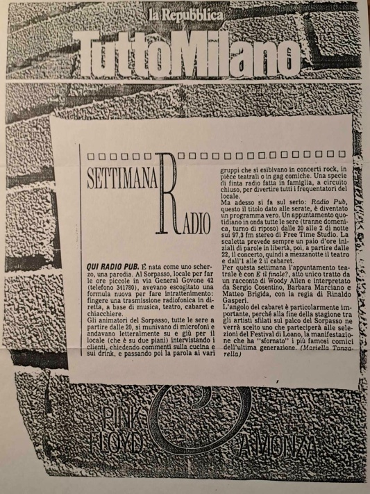 "Radio Pub" con musica rock live in diretta dal 'Sorpasso' di Milano in Via Govone