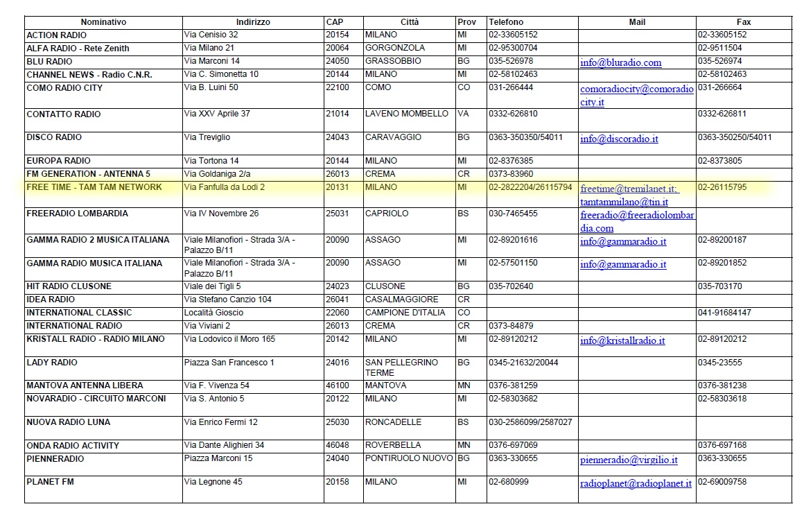 acquistata da altre radio.