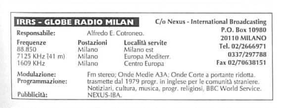 , l'emittente fu attiva in onde corte con il nome di IRRS-Shortwave, con un'emissione ricevibile in tutta Europa,