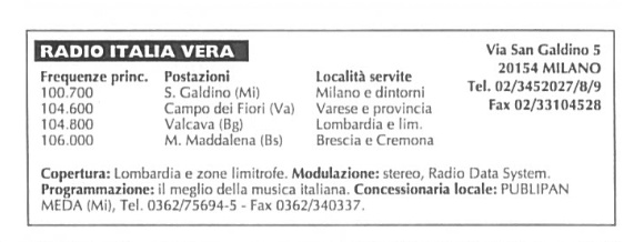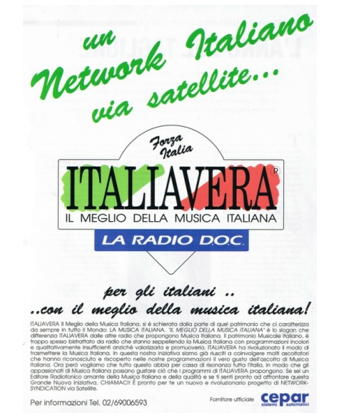 Particolarita' della radio fu quella di avere avuto la possibilita' di trasmettere anche via satellite diventando (dal 28 Settembre 1994)