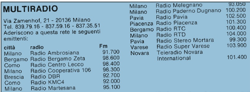 Il circuito, che fu denominato Multiradio, si componeva di emittenti di spessore, quali:
