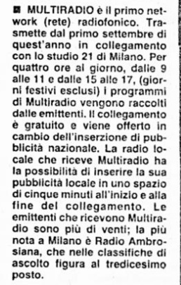 L'esperienza di Multiradio si sarebbe pero' dimostrata incapace di reggere il confronto con la realta' del mercato, concludendosi prematuramente nel 1983.