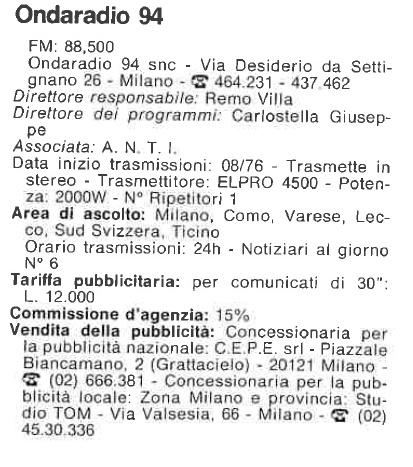 Nata col nome di Ondaradio 94 (per la frequenza utilizzata) la prima sede è in Via Bruzzesi 25 a Milano .