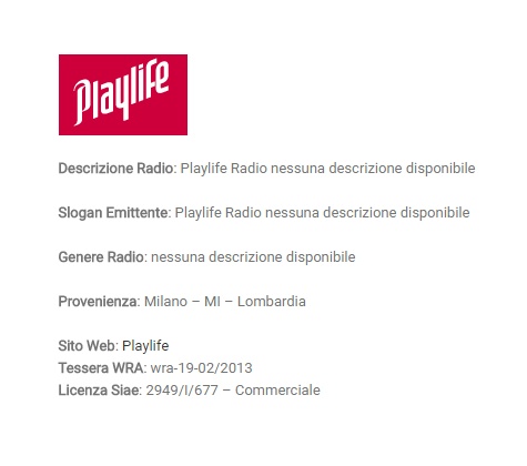 mettere fine a tutto il mondo Playlife, radio compresa.