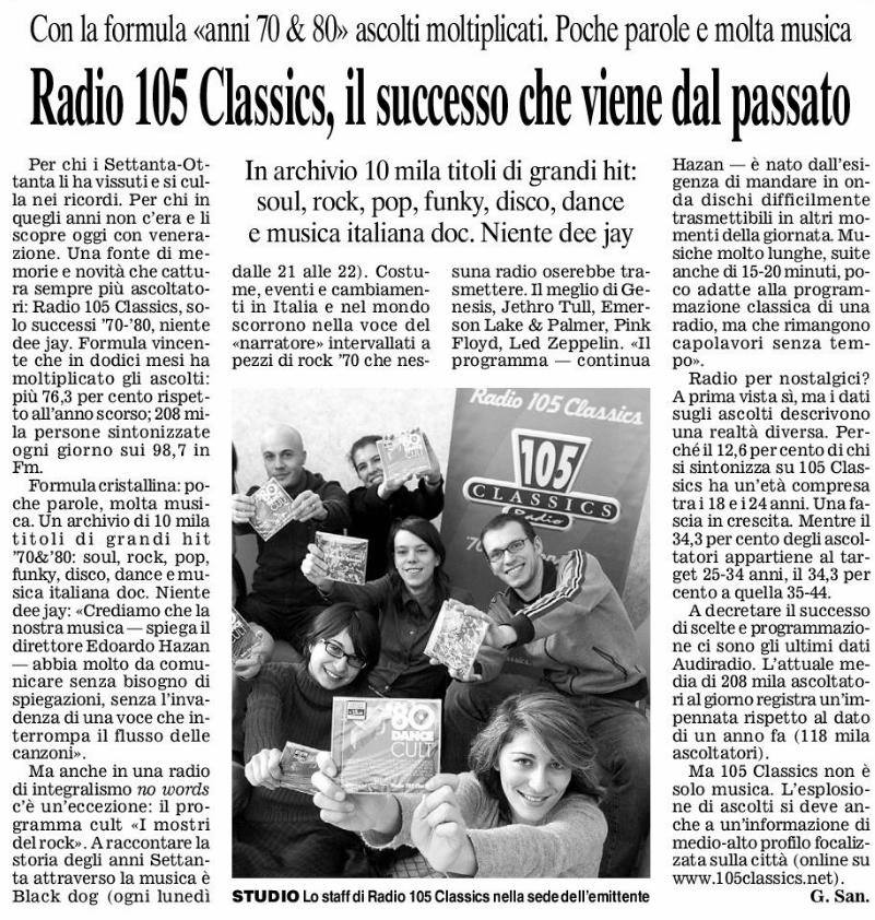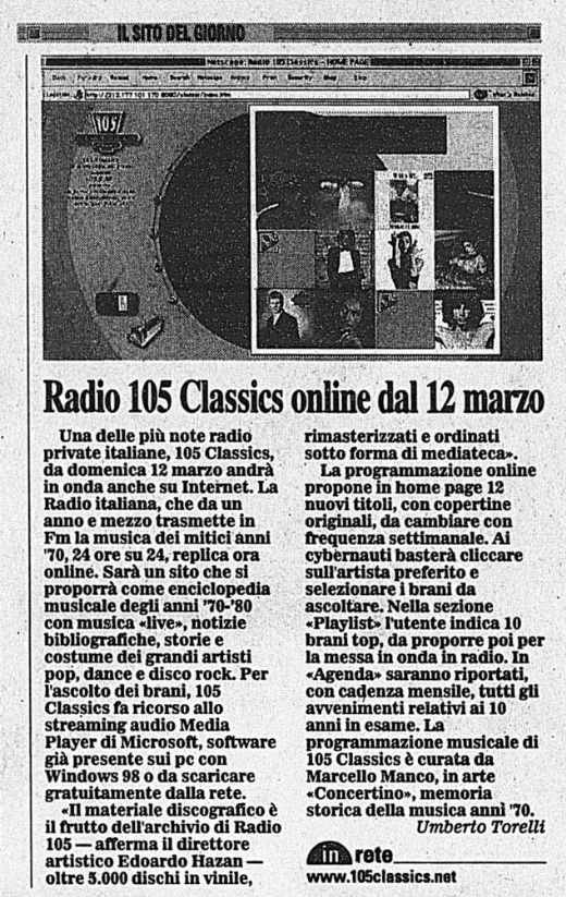 Radio 105 Classics. A dirigere la Radio sarà Edoardo Hazan, fratello di Alberto presidente di Finelco.