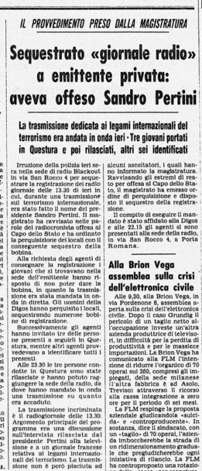 per la programmazione di musica rock d'intermezzo a trasmissioni senza filtro che, non a caso, diedero impulso ad un processo penale a carico dei redattori per vilipendio verso il capo dello Stato.