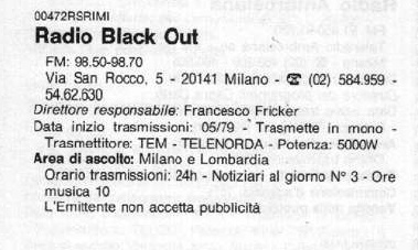 .... 98,700 MHz, frequenza identificativa della ben più famosa Radio Black Out, che assurse a notorietà
