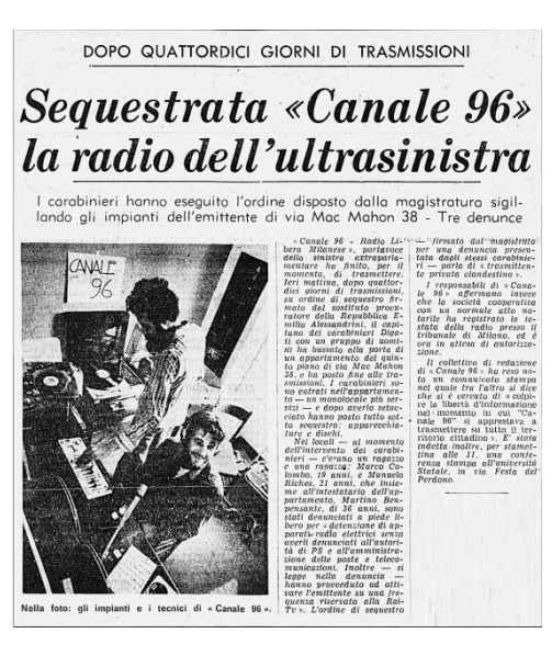 venne fondata Radio Canale 96, una delle prime radio "libere" dell'etere italiano.