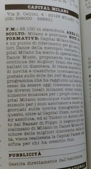 La piccola Capital Radio Milano era la radio del momento; cominciarono ad interessarsi ed a prestarle particolare attenzione anche le emittenti