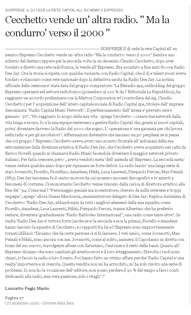 cede anche Radio Capital (leggi articolo del