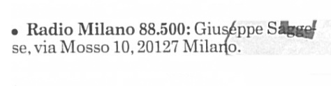 dei primi anni Novanta, riporta questa radio molto probabilmente legata a