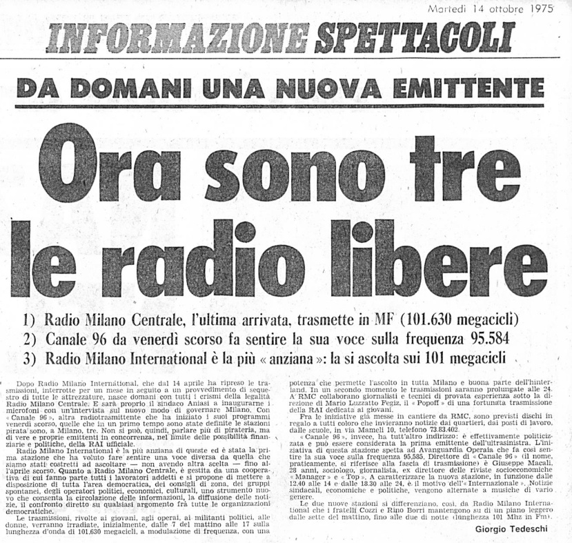 ad acquisire il marchio e le frequenze di Radio Milano Centrale.