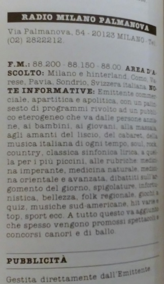 poi semplicemente Radio Palmanova, dal nome della via ove aveva i suoi studi, nel quartiere di Lambrate.