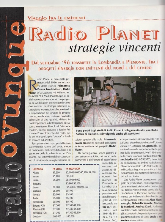 Nell'ambito di un piano di riordino di risorse editoriali e frequenziali, nel 1996 nasce Radio Planet.