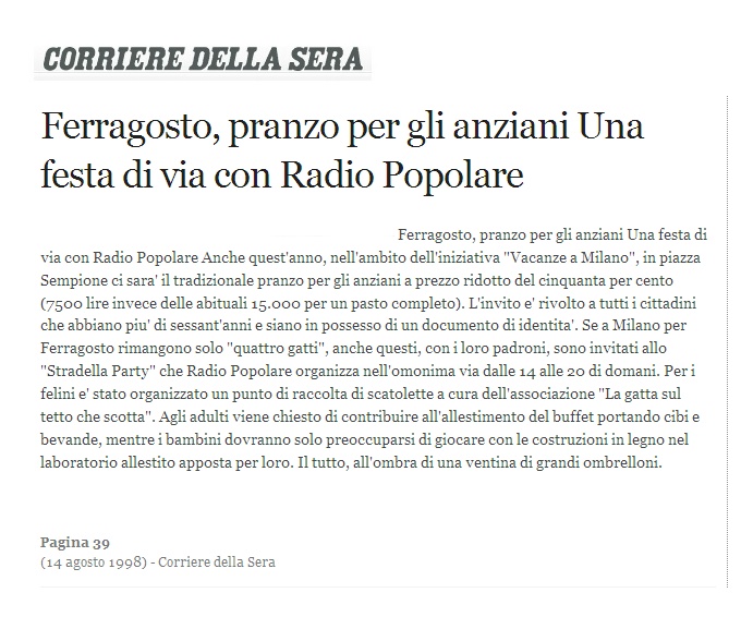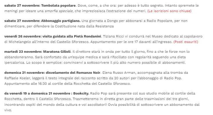 Anno per anno gli eventi principali riguardanti Radio Popolare denominata, quasi per antonomasia,
