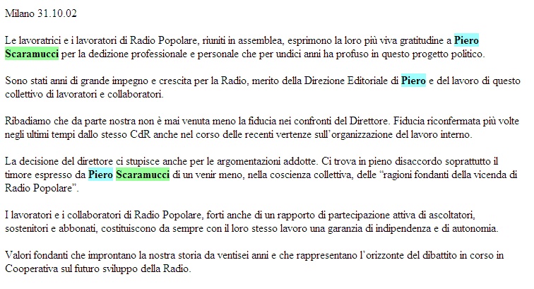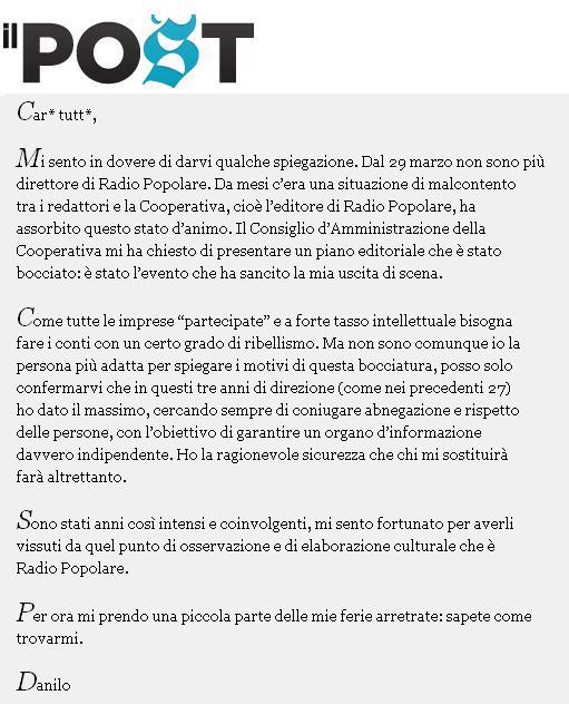 sua mail sulla fine del ruolo indirizzata ai lavoratori della Radio).