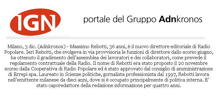 (che si popone di “raccontare mondi sociali diversi e i loro territori. E di ascoltare buona musica”) diventa un appuntamento quotidiano di tutto il network. Massimo Rebotti
