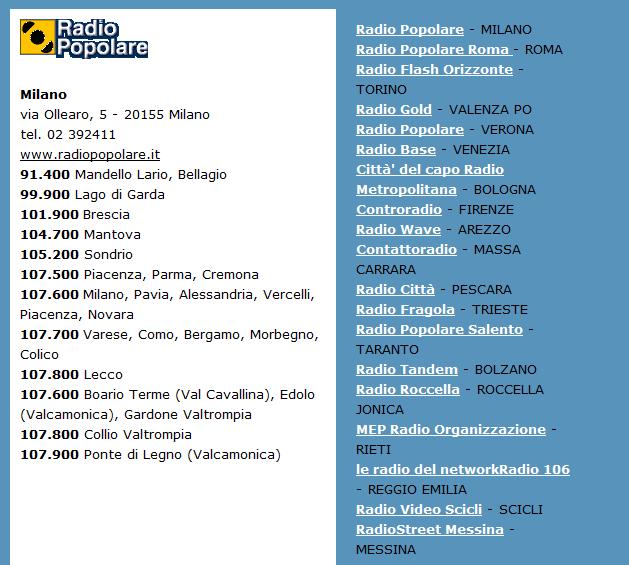 Dieci radio lombarde trasmettono in contemporanea i notiziari di Radio Popolare.