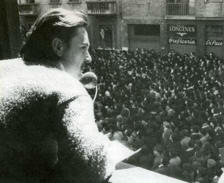 nelle vesti di cronista durante i funerali di Fausto e Iaio dell' anno precedente ).