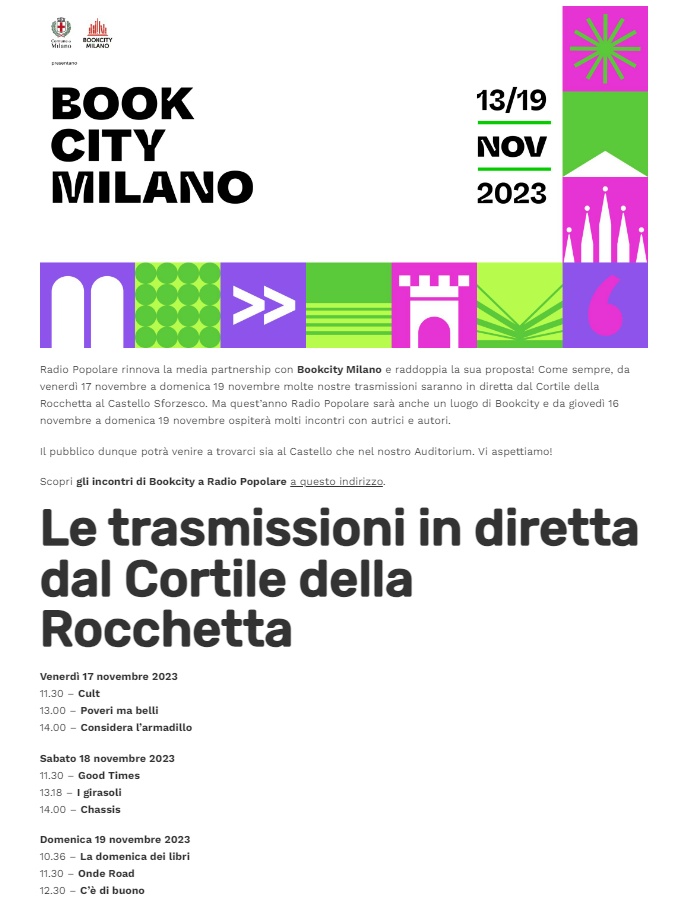 A Novembre Radio Popolare rinnova la partnership con Bookcity Milano