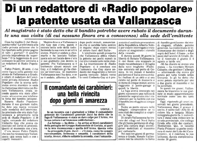 Renato Vallanzasca, evaso dal carcere, condece un'intervista esclusiva a Umberto Gay - allegato (14).