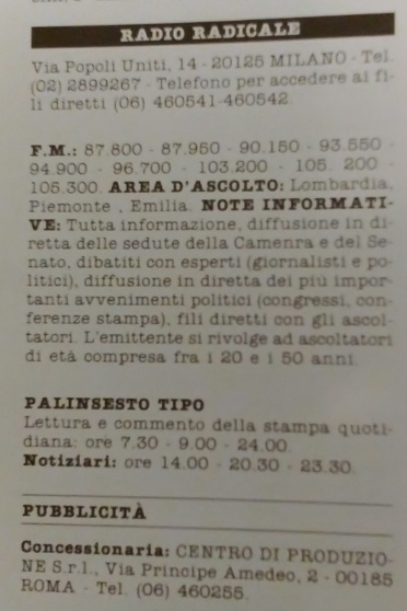 Il collegamento, in verità di bassa qualità audio (ma i contenuti non erano musicali e quindi poteva andare), permise di sfruttare l’immediatezza del mezzo radiofonico, trasformando così Radio Radicale nella radio d’informazione e approfondimento che tutti conosciamo".