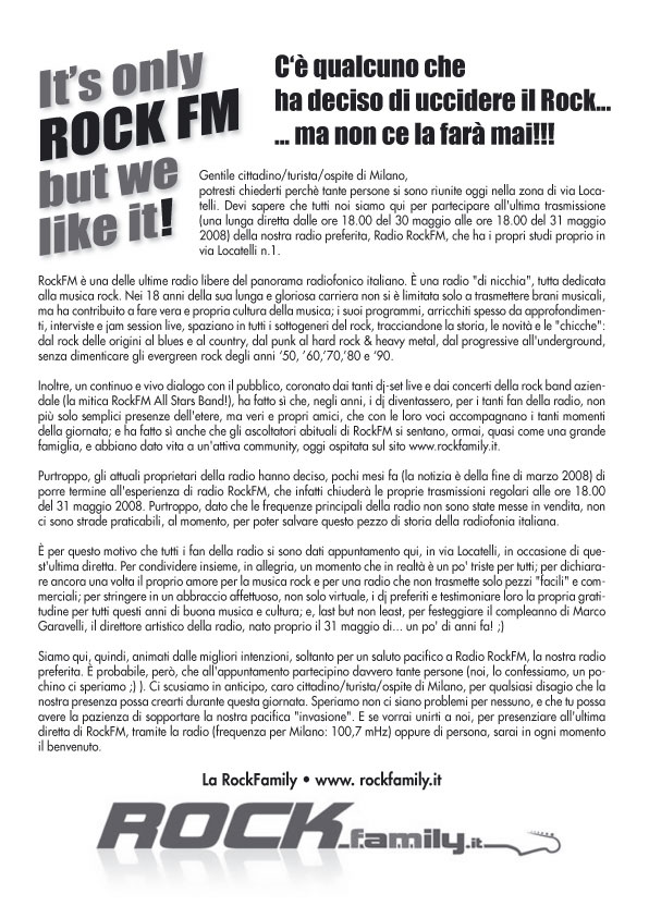 trasmissione del Maggio 2008, "autogestita" da alcuni dj di Rock Fm, che spiegano le