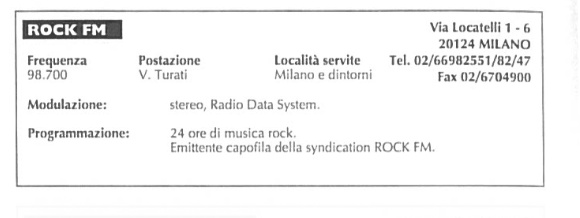 Nell'ultimo anno venne modificata la formula di Rock Fm: in precedenza la rotazione musicale mischiava sapientemente le ultime novità discografiche nel campo del rock