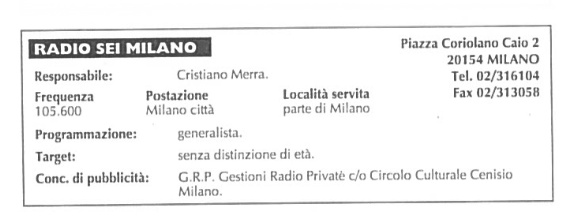 fuoriescono dalla storica emittente e fondano Radio Sei Milano.