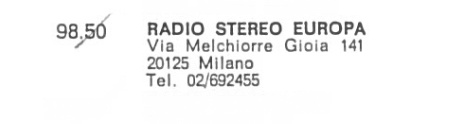 segnala la presenza di Radio Stereo Europa con sede in Via Melchiorre Gioia 141 a Milano.