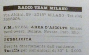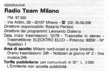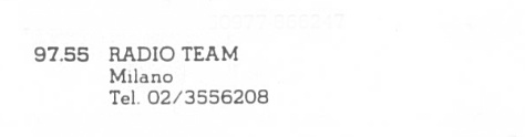 si trasforma in Radio Team Milano , dandosi una migliore organizzazione ed un alone di professionalità. Ma non sfonda ed in breve, schiacciata dal numero impressionante di